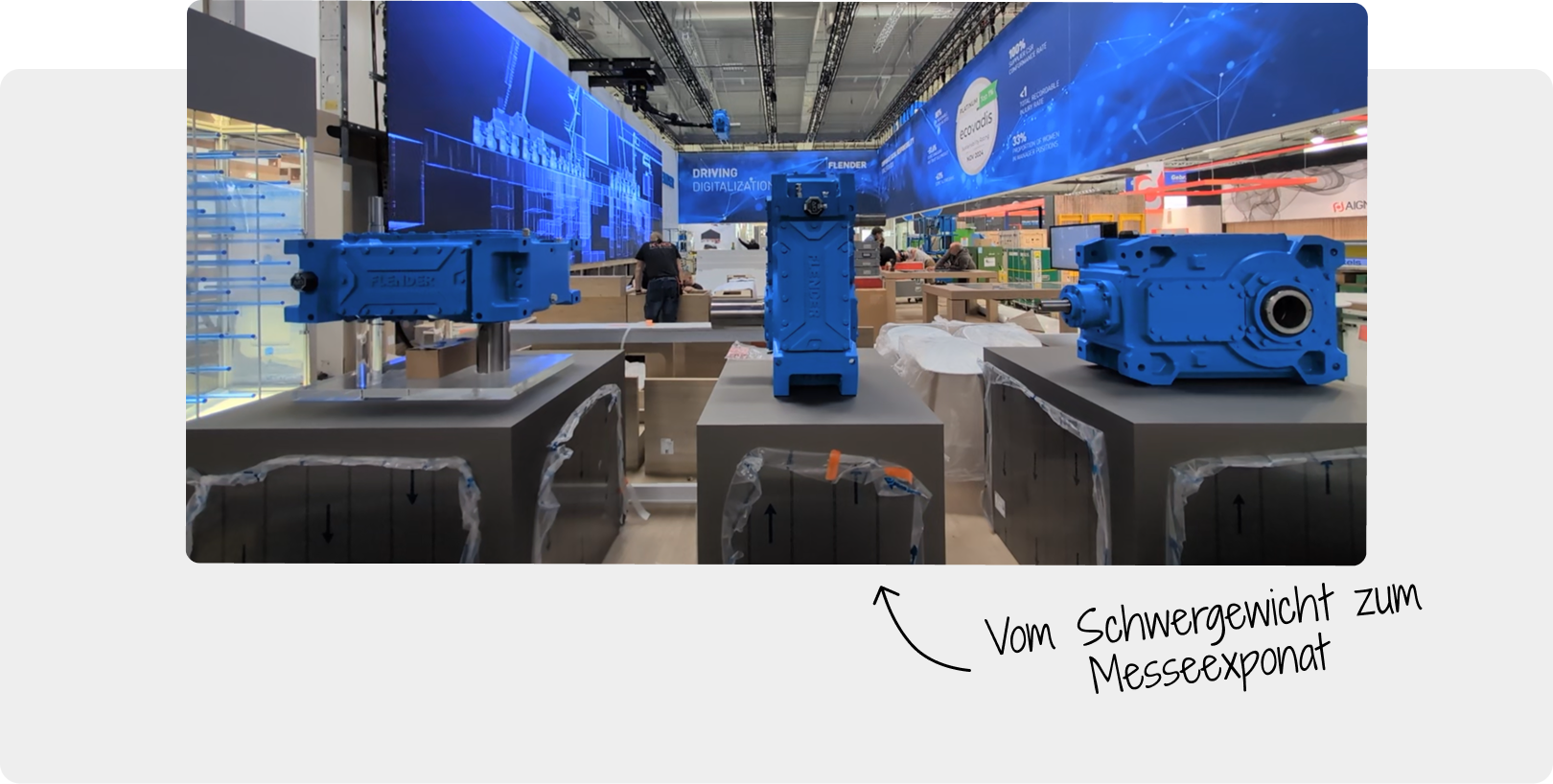 Ein Getriebe ist normalerweise nichts, was man einfach so in die Hand nimmt. Es ist zu schwer, zu komplex, oft zu wertvoll und im Original kaum dafür gemacht, spontan auf einem Messestand präsentiert zu werden. Oder anders gesagt: Wer schon einmal versucht hat, ein echtes Getriebe zu bewegen, weiß, dass dabei schnell eher der Rücken als das Produkt im Mittelpunkt steht.