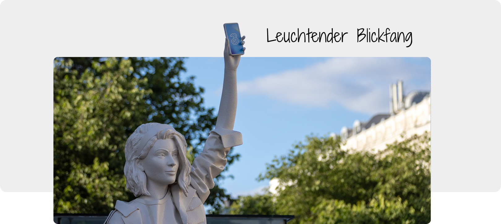 In the end, an eye-catching XXL statue was created for an Austrian mobile phone provider: 370 cm high, made of 13 parts, with an illuminated smartphone, high-quality surface treatment and a secure stand solution for outdoor use.