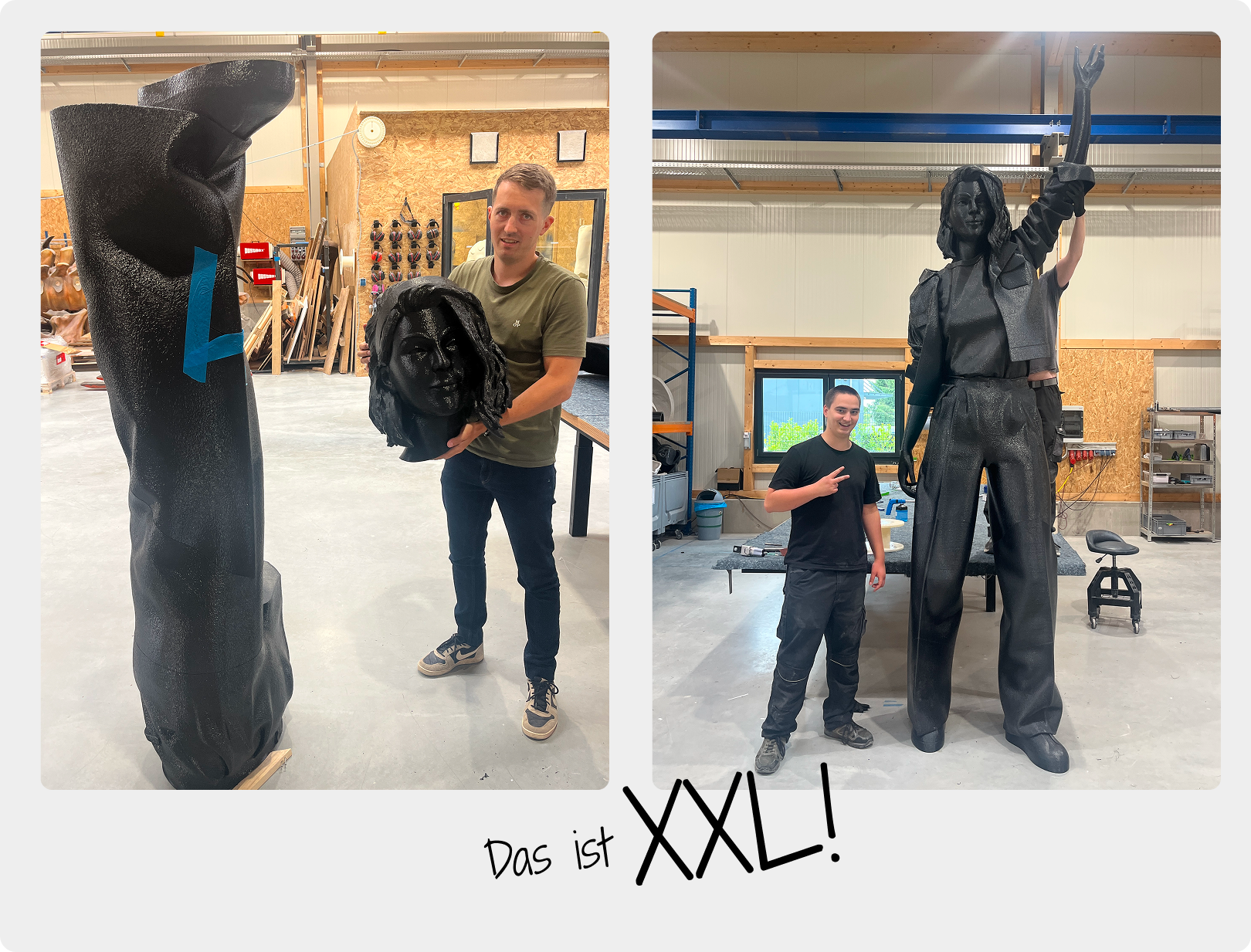 With a base, stand solution and wind load statics, the statue was designed in such a way that it not only looks impressive, but also meets the practical requirements of outdoor use. The result was an object that combines impact and technical safety.