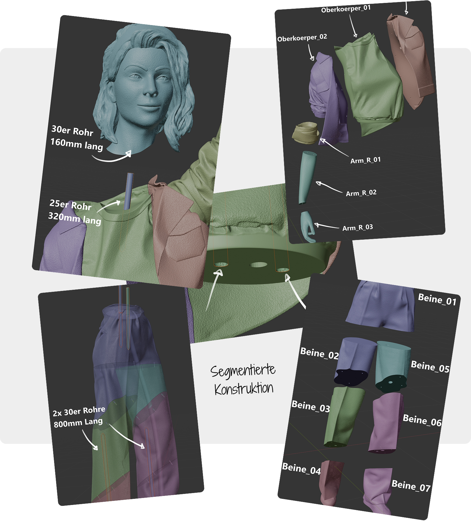 To ensure that this size remains not only impressive but also practicable, the statue was divided into several sub-segments. This makes it easy to transport, assemble at the point of use and, if necessary, dismantle it again in order to be stored or reused at another location.